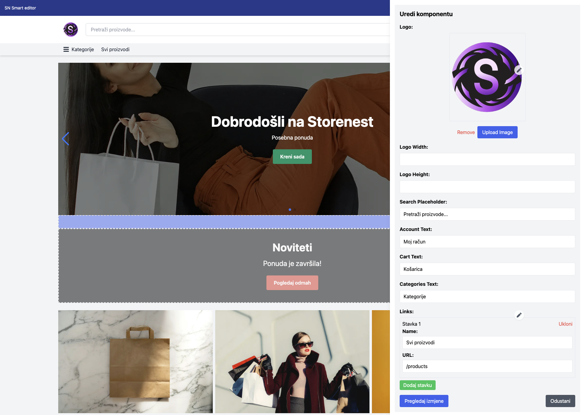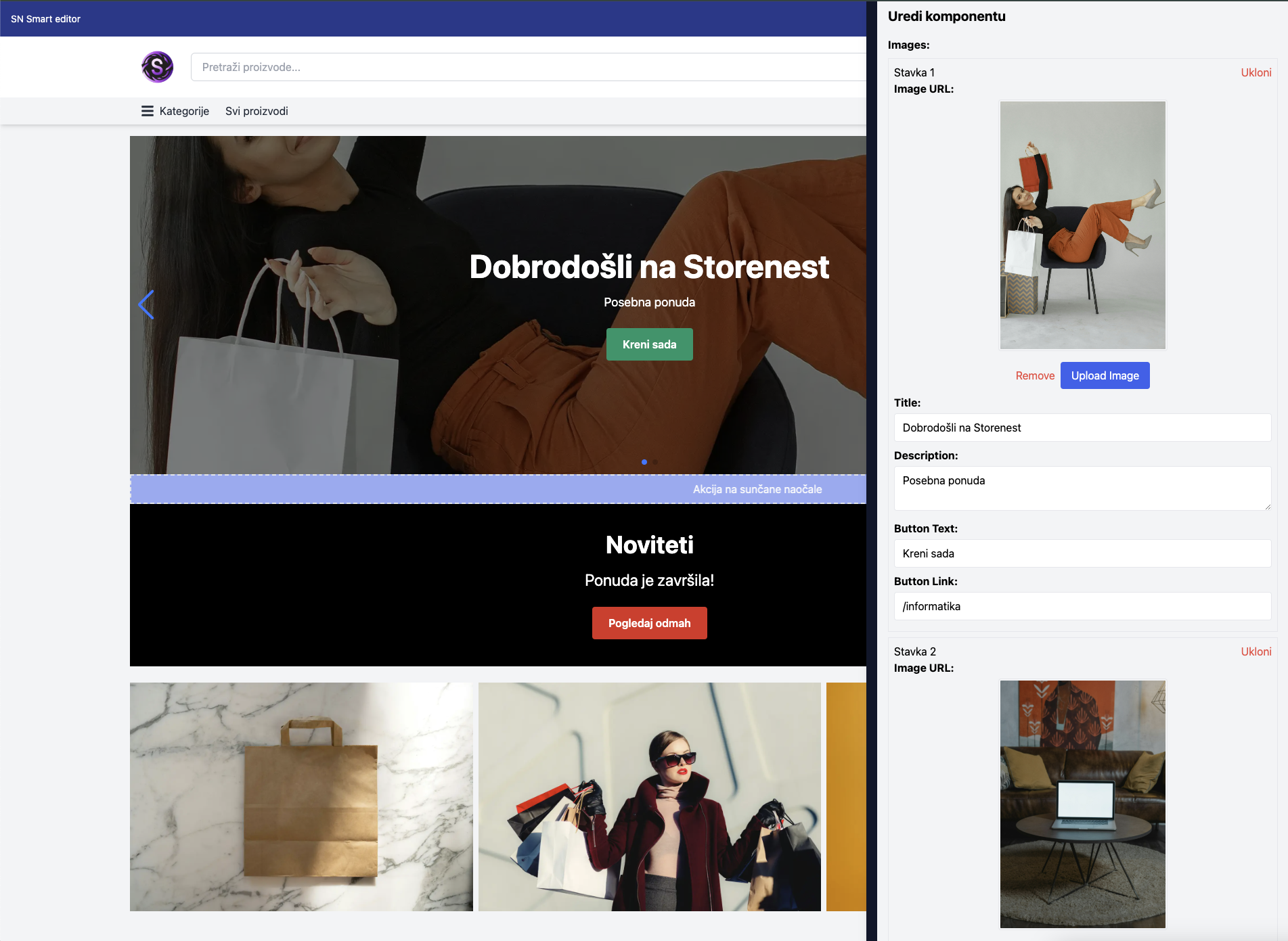 Uređivanje Komponenata Webshopa u Smart Editoru